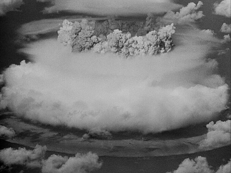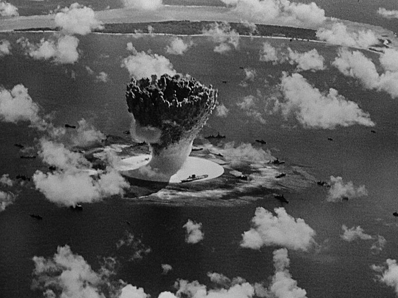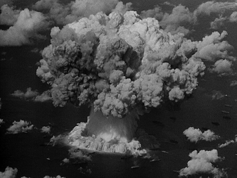 Bruce Conner’s CROSSROADS is a montage of declassified military film footage of the U.S. government’s underwater test explosion of an atomic bomb at Bikini atoll in the Marshall Islands in July 1946, as part of Operation Crossroads. Conner draws out the immersive spectacle of the sudden, terrifying unleashing of cataclysmic power by splicing together twenty-three unaltered shots of the explosion and its aftermath, filmed at different speeds and from different angles and heights. Conner’s extended repetition of the event stretches time almost to a standstill, suspending the viewer between dread and contemplation, and reconstructing the sense of arrested time that caused a witness to observe that “in that moment hung eternity.”
