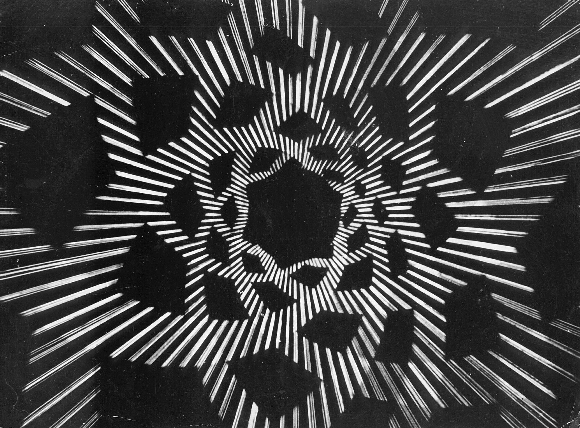 Oskar Fischinger was one of a group of artists working in Weimar Germany in the 1920s who produced abstract films exploring non-narrative compositions using color, light, music, and movement. He performed multiple-projector film shows with percussive musical accompaniment, changing the music and the order of the films periodically.