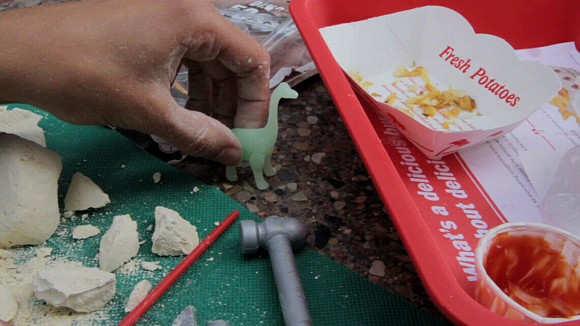 As part of the Dreamlands film series, Anna Zett’s film screens in Death Is Green, a program of films that explore the arc of the natural world’s evolution from the primeval environment to the Anthropocene. Animated Hollywood dinosaurs, fossil traders and scientists try to reconstruct the plot of natural history. Black ice and storms threaten imminent collapse. Film buried then excavated from a landfill, images created from decomposition, and abandoned technologies turn dig sites into crime scenes.