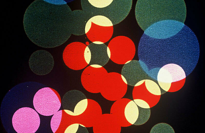 This exhibition presents one of the first multimedia projections ever made: Oskar Fischinger’s Raumlichtkunst (Space Light Art), a re-creation of his multiple-screen film events, first shown in Germany in 1926, and recently restored by the Center for Visual Music in Los Angeles. Radical in format, its display of abstract shapes and colors produces, according to Fischinger, “an intoxication by light from a thousand sources.”